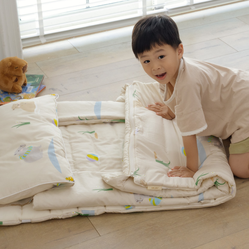 兒童睡袋系列同步推出床包(含枕套)組合,但僅限單人尺寸,不開放客製尺寸。 - 床包系列可以單買枕套或被套嗎?
