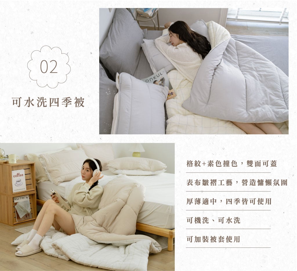 6.麻糬被跟四季被該如何清潔?