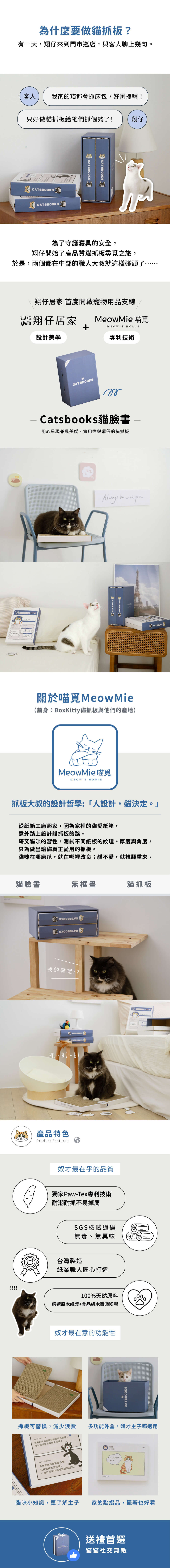 貓咪抓東西是為了保養指甲、伸展肌肉、釋放壓力,真正的書頁太軟,無法滿足這些需求。