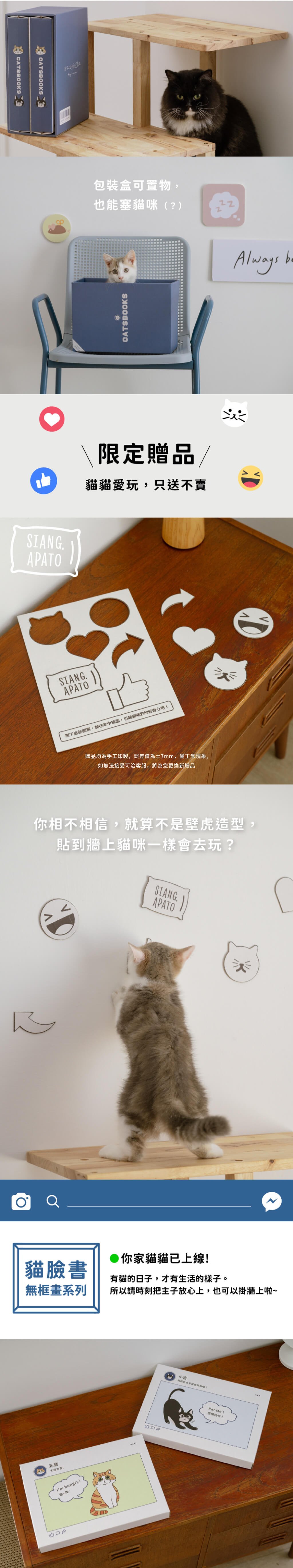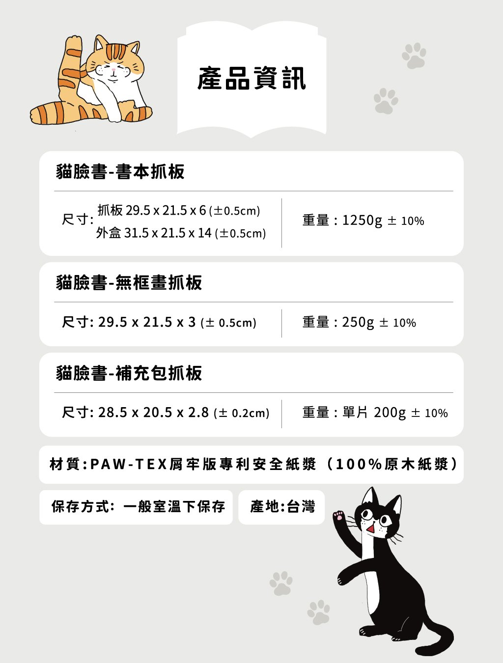貓臉書系列的印刷均採用環保水性油墨,安全無毒,貓咪舔咬也不用太過擔心唷!