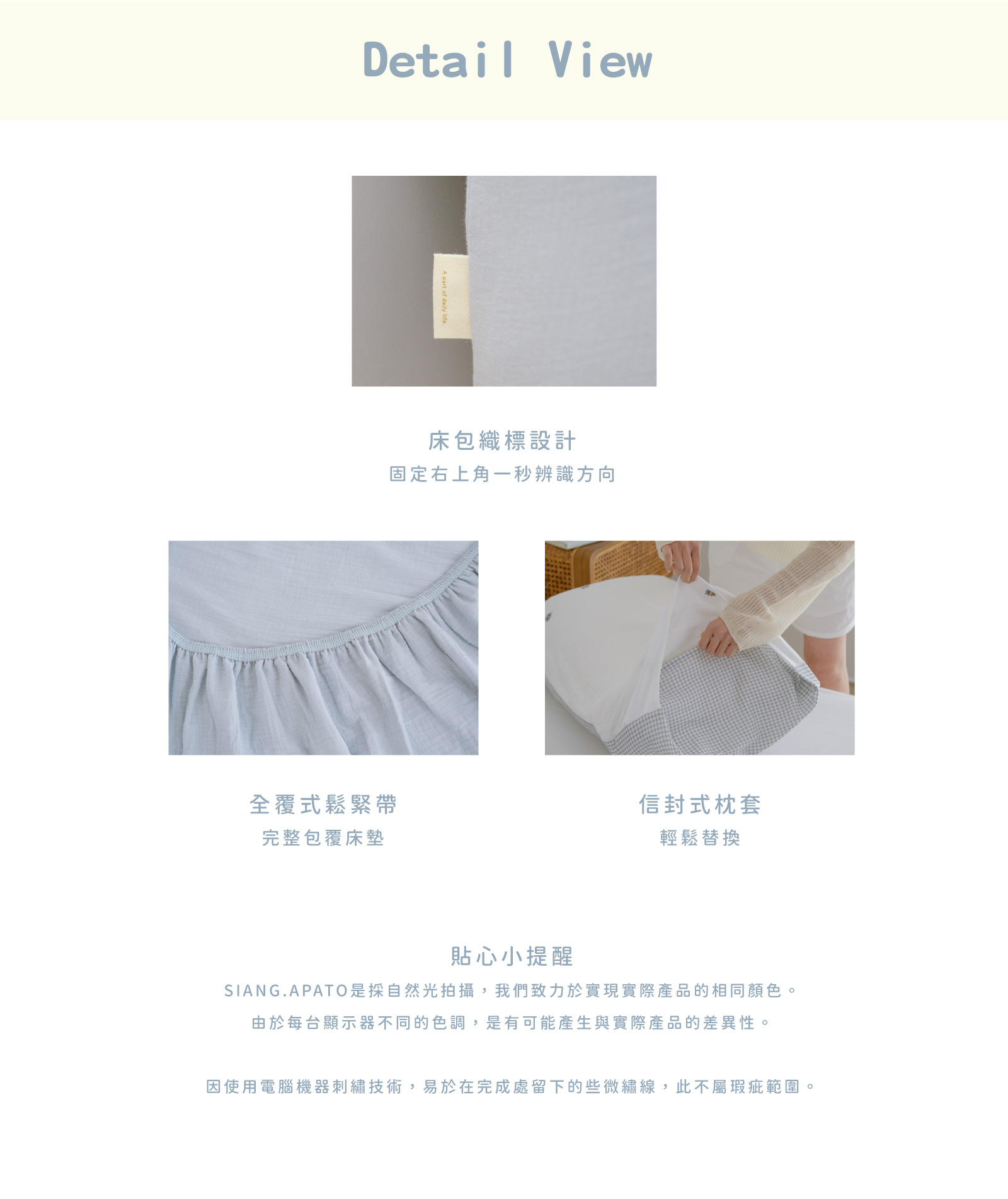 小富士 - 二重紗 / 雙層紗床包組 ( 素色床包 + 刺繡枕套 ) NT$4,160 NT$ 2,080 可國外配送 可國外配送 「跳出浮世繪之外,就可以被放進口袋。」 ◆ 100% Cotton 長絨綿花製成,細緻耐用 ◆ 二重紗/雙層紗材質,蓬鬆透氣、貼身柔軟 ◆ Made in Taiwan 台灣製造,品質安心 NT$4,160 NT$ 2,080 #二重紗(雙層紗)#床包組#單人床包#雙人床包#雙人加大床包#雙人特大床包#刺繡#素色 尺寸 單人雙人加大特大 床包尺寸 寬 長 高 公分 床包鋪棉 需要 不需要 被套尺寸 寬 長 公分 被套鋪棉 需要 不需要 價格試算 數量 加入購物車 立即購買 優惠活動 消費滿 990元 即可用優惠價格加購商品 台中購物節合作5倍店家|官網及北屯門市限定! Line詢問 商品細節 尺寸指南 洗滌方式 商品評價(0)