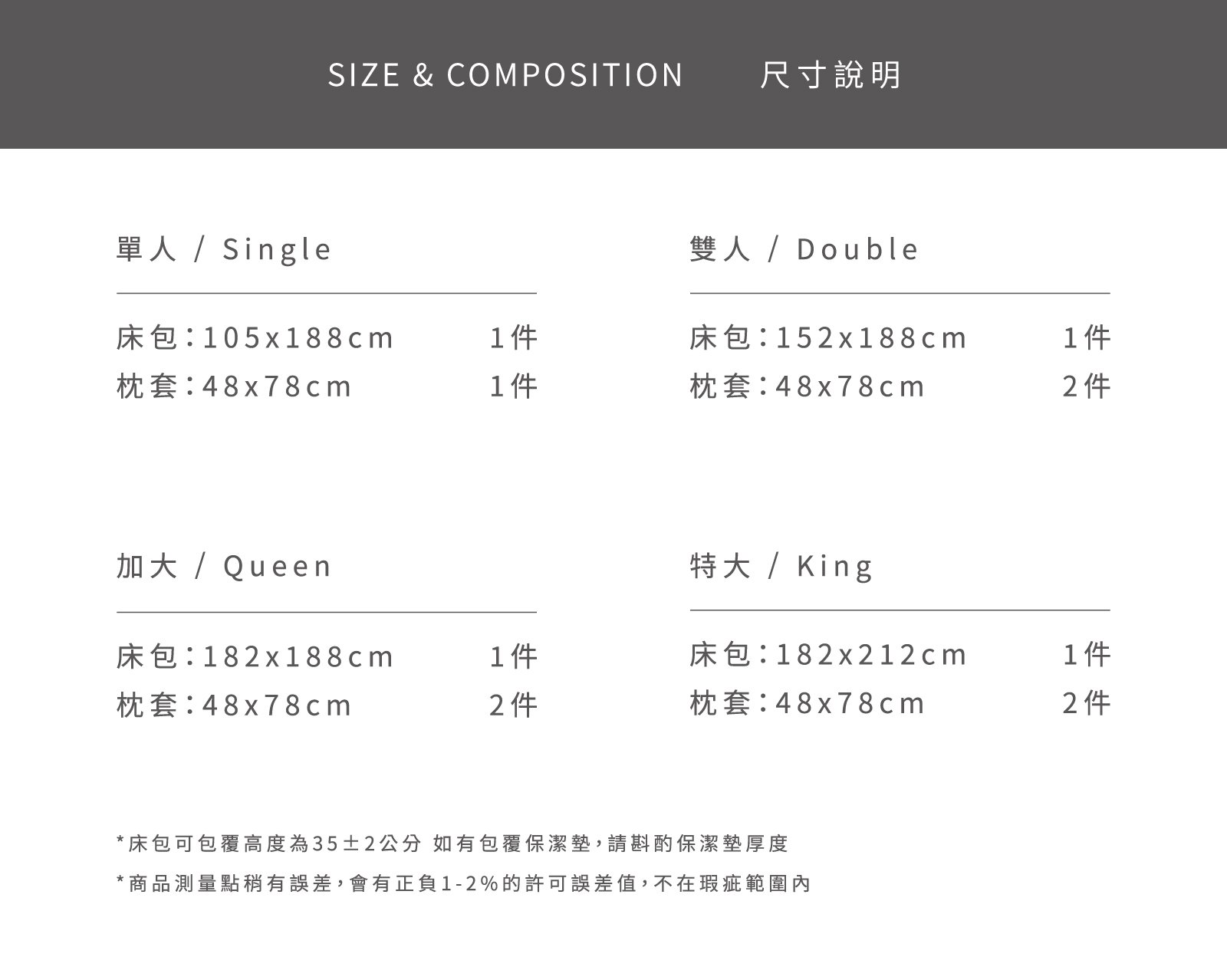 Forest - 二重紗 / 雙層紗床包組 ( 格紋床包 + 格紋枕套 ) NT$3,760 NT$ 1,880 可國外配送 可國外配送 「森林小精靈在詠唱。」 ◆ 100% Cotton 長絨綿花製成,細緻耐用 ◆ 二重紗/雙層紗材質,蓬鬆透氣、貼身柔軟 ◆ Made in Taiwan 台灣製造,品質安心 NT$3,760 NT$ 1,880 #二重紗(雙層紗)#床包組#單人床包#雙人床包#雙人加大床包#雙人特大床包 尺寸 單人雙人加大特大 床包尺寸 寬 長 高 公分 床包鋪棉 需要 不需要 被套尺寸 寬 長 公分 被套鋪棉 需要 不需要 價格試算 數量 加入購物車 立即購買 優惠活動 翔仔居家感謝祭|全系列材質床寢87折 消費滿 990元 即可用優惠價格加購商品 翔仔居家感恩回饋全館滿額禮 ( 數量有限,贈完為止 ) Line詢問 商品細節 尺寸指南 洗滌方式 商品評價(0)