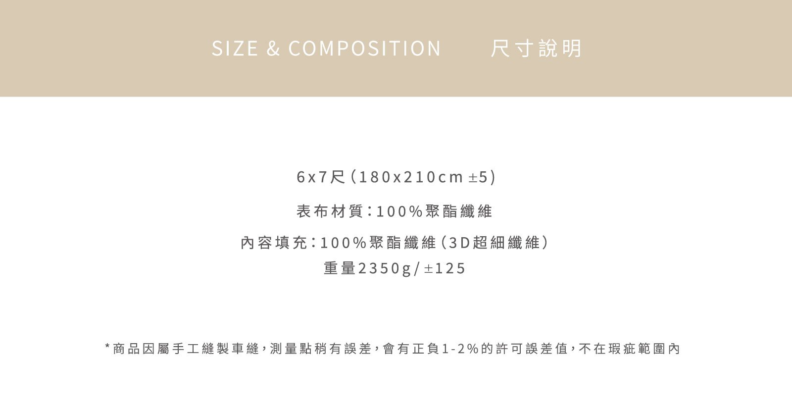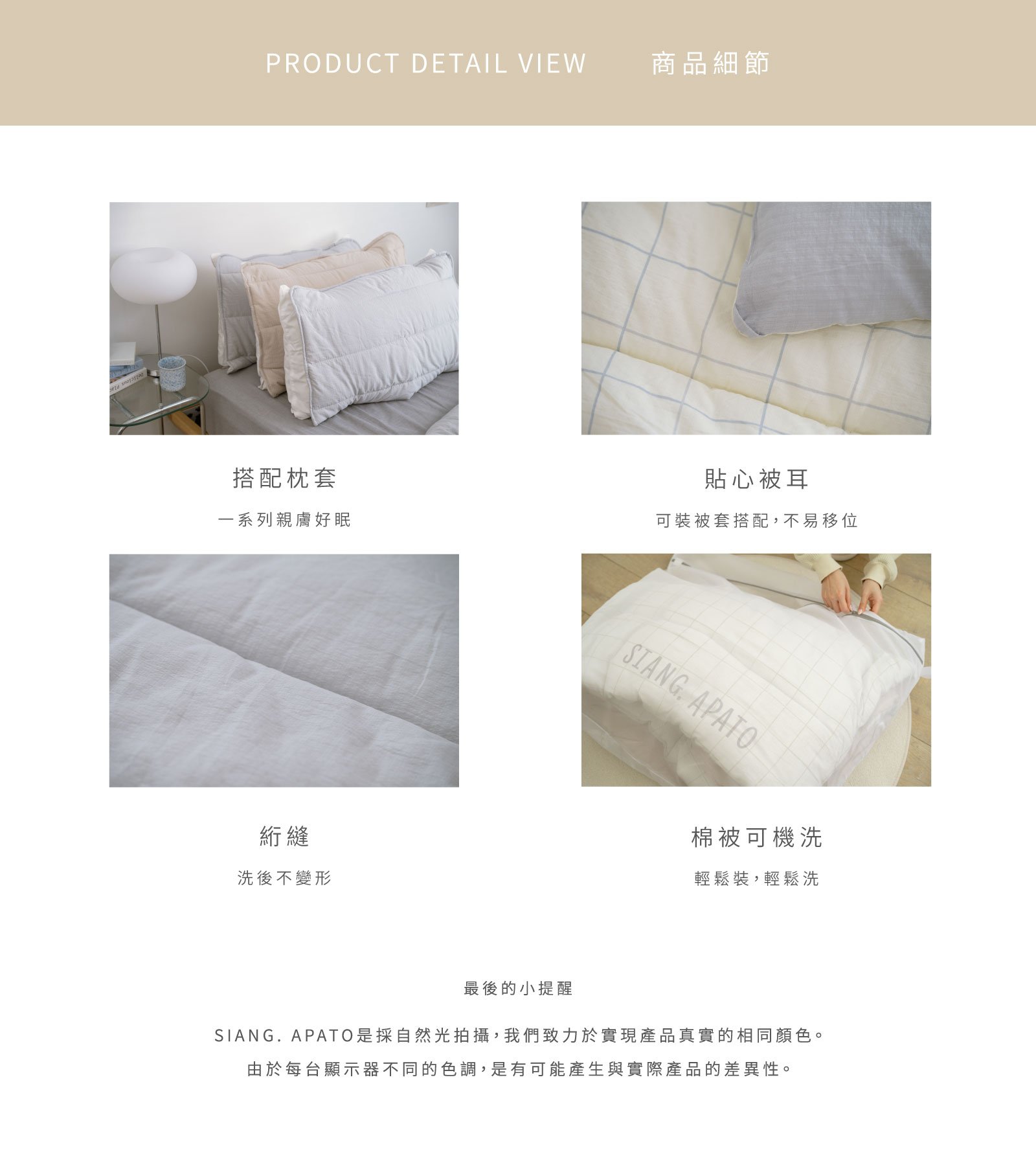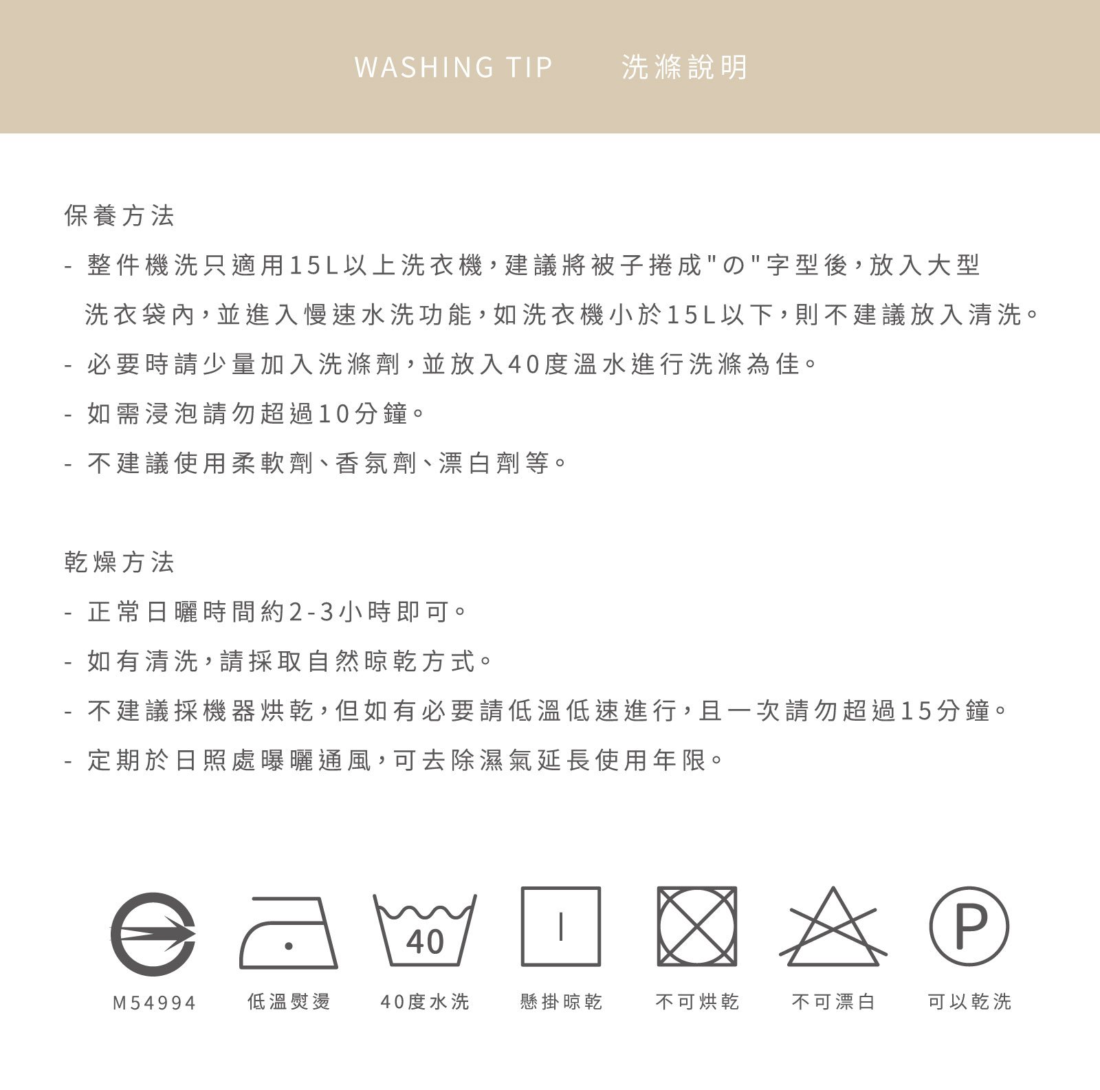 新品 預購 輕輕早晨 - 可水洗四季被 ( 添加CBD ) NT$3,360 NT$ 1,680 不可超取 可國外配送 預購品付款完後21天出貨 不可超取 可國外配送 NT$3,360 NT$ 1,680 #棉被#水洗被 床包尺寸 寬 長 高 公分 床包鋪棉 需要 不需要 被套尺寸 寬 長 公分 被套鋪棉 需要 不需要 價格試算 數量 開放時間:2025-12-30 10:00 優惠活動 消費滿 990元 即可用優惠價格加購商品 翔仔居家感恩回饋全館滿額禮 ( 數量有限,贈完為止 ) Line詢問 商品細節 尺寸指南 洗滌方式 商品評價(0)