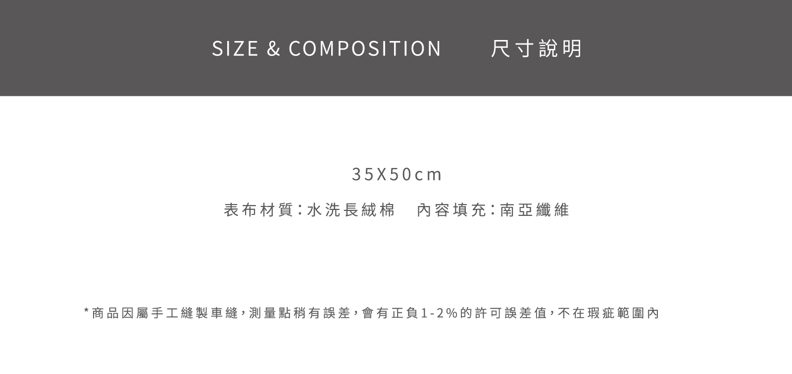 刺繡水洗棉抱枕 NT$1,598 NT$ 799 不可超取 可國外配送 不可超取 可國外配送 「你喜歡活潑小松鼠,還是柔軟泰迪熊?」 ◆ 表布採用100% Cotton 長絨綿花 ◆ 經過水洗處理,不掉色、更柔軟 ◆ Made in Taiwan 台灣製造,品質安心 ※本商品尺寸為35 x 50 cm,含枕芯 NT$1,598 NT$ 799 #水洗棉#居家小物 款式 奶油黃-麵包刺繡可可咖-Teddy刺繡 床包尺寸 寬 長 高 公分 床包鋪棉 需要 不需要 被套尺寸 寬 長 公分 被套鋪棉 需要 不需要 價格試算 數量 加入購物車 立即購買 優惠活動 冬日禮遇季|聖誕交換禮物9折 消費滿 990元 即可用優惠價格加購商品 台中購物節合作5倍店家|官網及北屯門市限定! Line詢問 商品細節 尺寸指南 洗滌方式 商品評價(7)