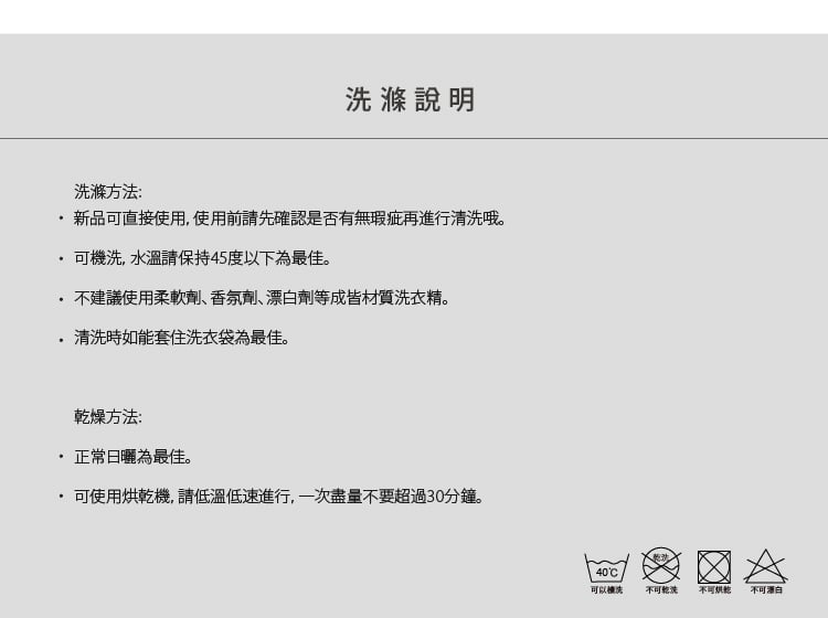 TYVEK物理防螨保潔墊 NT$3,360 NT$ 1,680 可國外配送 可國外配送 「會呼吸的保潔墊。」 ◆ 表布採用100% Cotton 純棉 (400織緞紋棉布),舒適透氣 ◆ 底部採用美國杜邦TYVEK無紡纖維,有效阻絕塵螨 ◆ 立體編織技術,不因洗滌失去防螨保潔效果 ※本商品可包覆約 35 公分以內的床墊 NT$3,360 NT$ 1,680 #保潔墊 尺寸 單人雙人加大特大 床包尺寸 寬 長 高 公分 床包鋪棉 需要 不需要 被套尺寸 寬 長 公分 被套鋪棉 需要 不需要 價格試算 數量 加入購物車 立即購買 優惠活動 消費滿 990元 即可用優惠價格加購商品 台中購物節合作5倍店家|官網及北屯門市限定! Line詢問 尺寸指南 洗滌方式 商品評價(9)