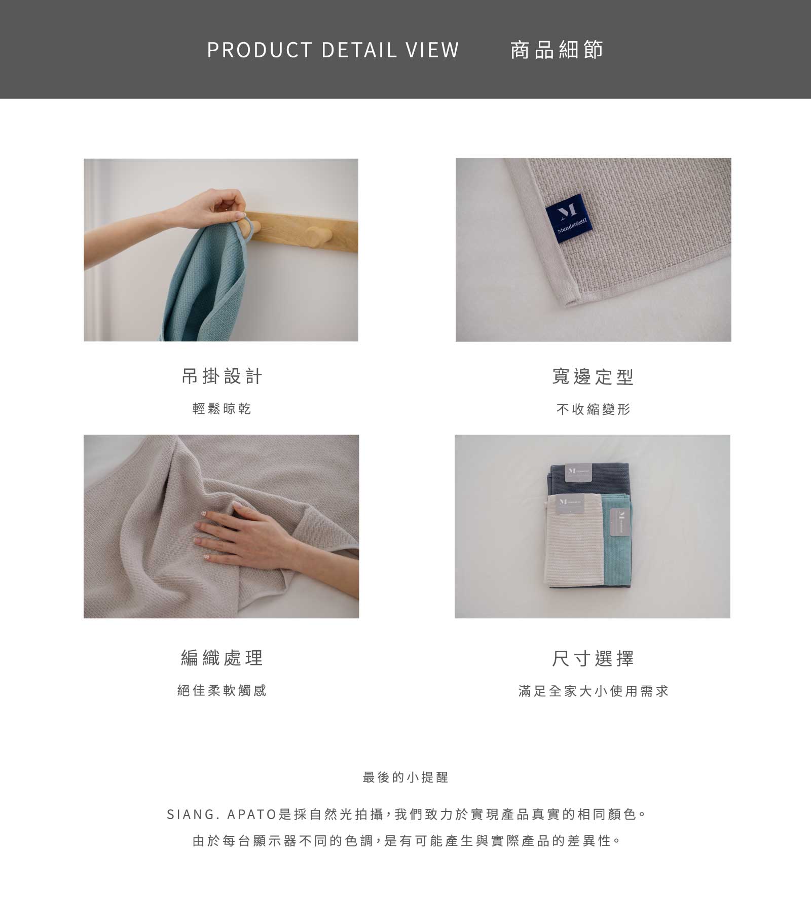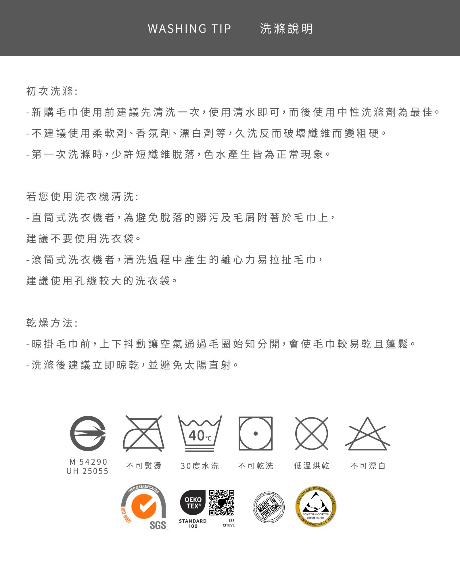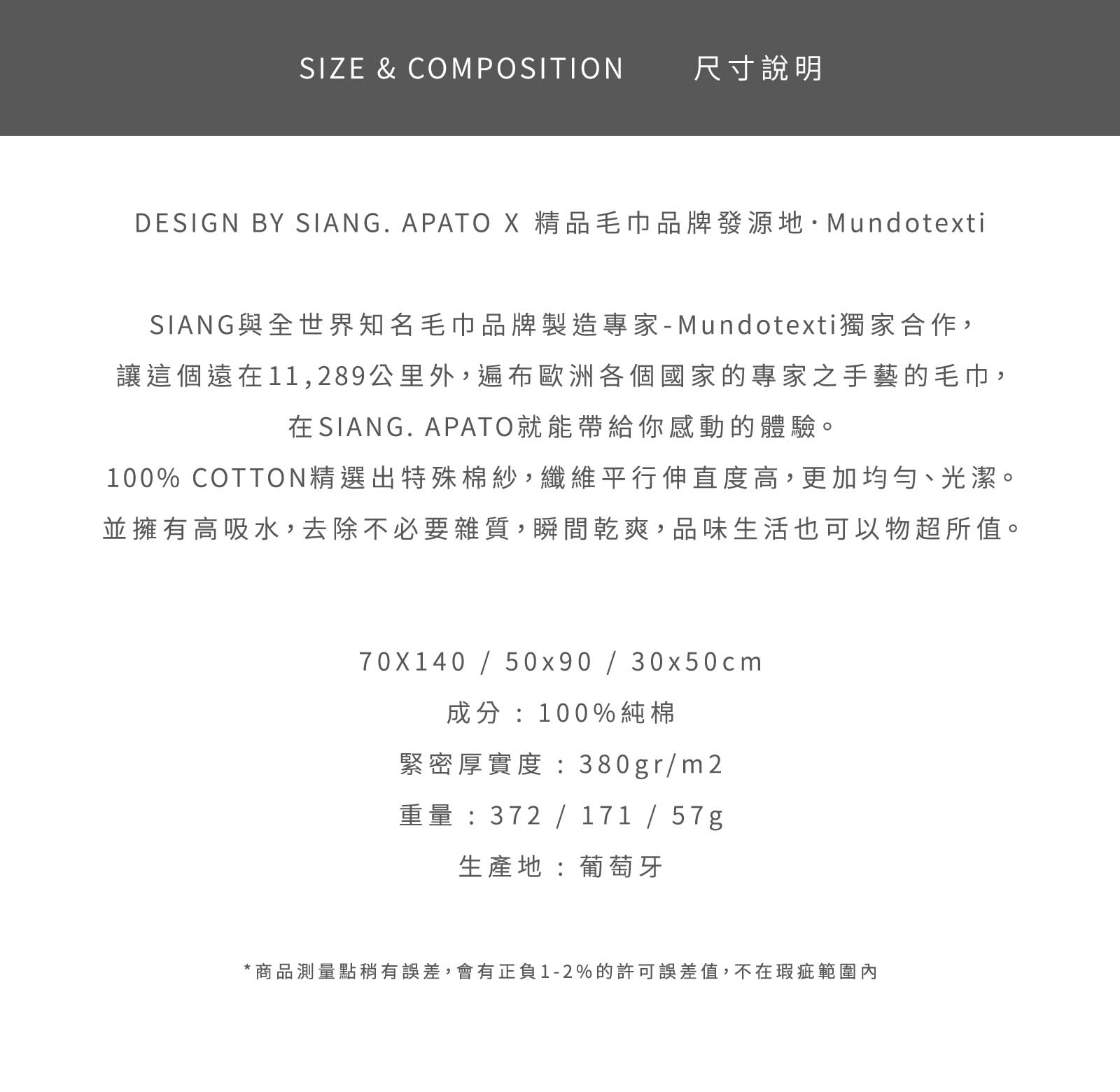 快乾蓬鬆精紡紗 - 毛巾 / 浴巾 NT$378 NT$ 189 可國外配送 可國外配送 「這般的肌膚之親,令人無法自拔。」 ◆ 100% Cotton 細絨純棉,極致柔軟透氣 ◆ 葡萄牙進口頂級純棉,吸濕效果絕佳 ◆ 24支雙股紗線+單圈毛面,輕薄快乾、更耐用 NT$378 NT$ 189 #浴巾#毛巾#居家小物 尺寸 小毛巾 30cm x 50cm毛巾 50cm x 90cm浴巾 70cm x 140cm 顏色 霧銀灰湖水綠煙燻灰 ( 深灰色 ) 床包尺寸 寬 長 高 公分 床包鋪棉 需要 不需要 被套尺寸 寬 長 公分 被套鋪棉 需要 不需要 價格試算 數量 加入購物車 立即購買 優惠活動 Happy Women's Day 全館消費滿3800折380,滿7600折760 ( 出清品 / 3C居家商品 / 指定活動品不適用) 消費滿 990元 即可用優惠價格加購商品 消費滿$3,800贈SEMO洗臉髮帶 ( 乙組,不累贈,數量有限,贈完為止 ) Line詢問 商品細節 尺寸指南 洗滌方式 商品評價(0)