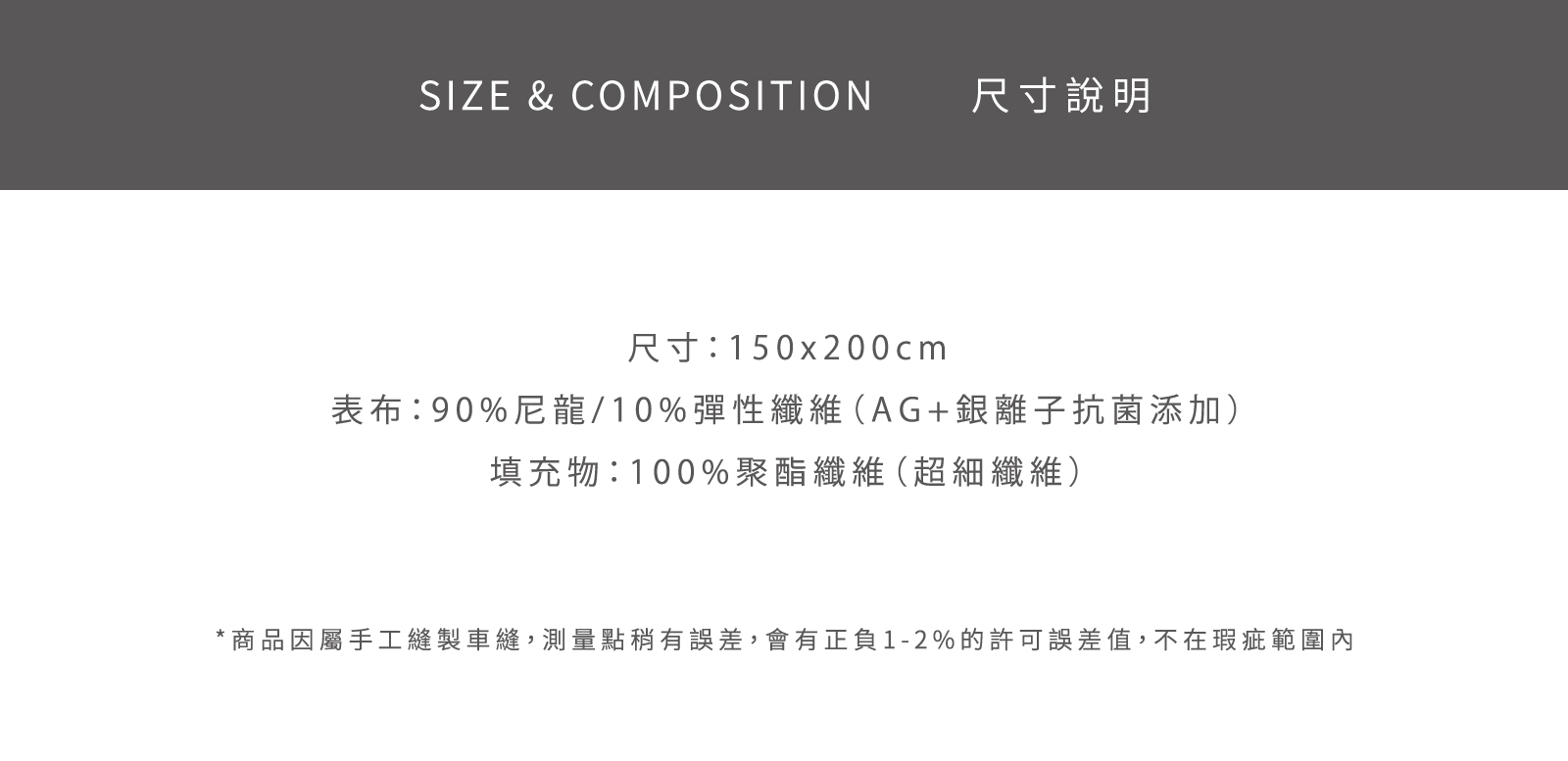 熊冷被 - 香草奶昔 / 涼被 / 瞬間冰感 Extreme Cool NT$3,560 NT$ 1,780 可國外配送 可國外配送 「香甜不膩口,濃郁上市!」 ◆業界頂標 Qmax涼感值 0.535 ◆表布: 90% Nylon + 10% Spandex(Ag+銀離子抗菌添加) ◆填充: 100% Polyester 超細纖維 ※本產品為接觸涼感,直接蓋即可感受到冰涼 NT$3,560 NT$ 1,780 #棉被#涼被#涼感#水洗被 床包尺寸 寬 長 高 公分 床包鋪棉 需要 不需要 被套尺寸 寬 長 公分 被套鋪棉 需要 不需要 價格試算 數量 加入購物車 立即購買 優惠活動 消費滿 990元 即可用優惠價格加購商品 台中購物節合作5倍店家|官網及北屯門市限定! Line詢問 商品細節 尺寸指南 洗滌方式 商品評價(5)