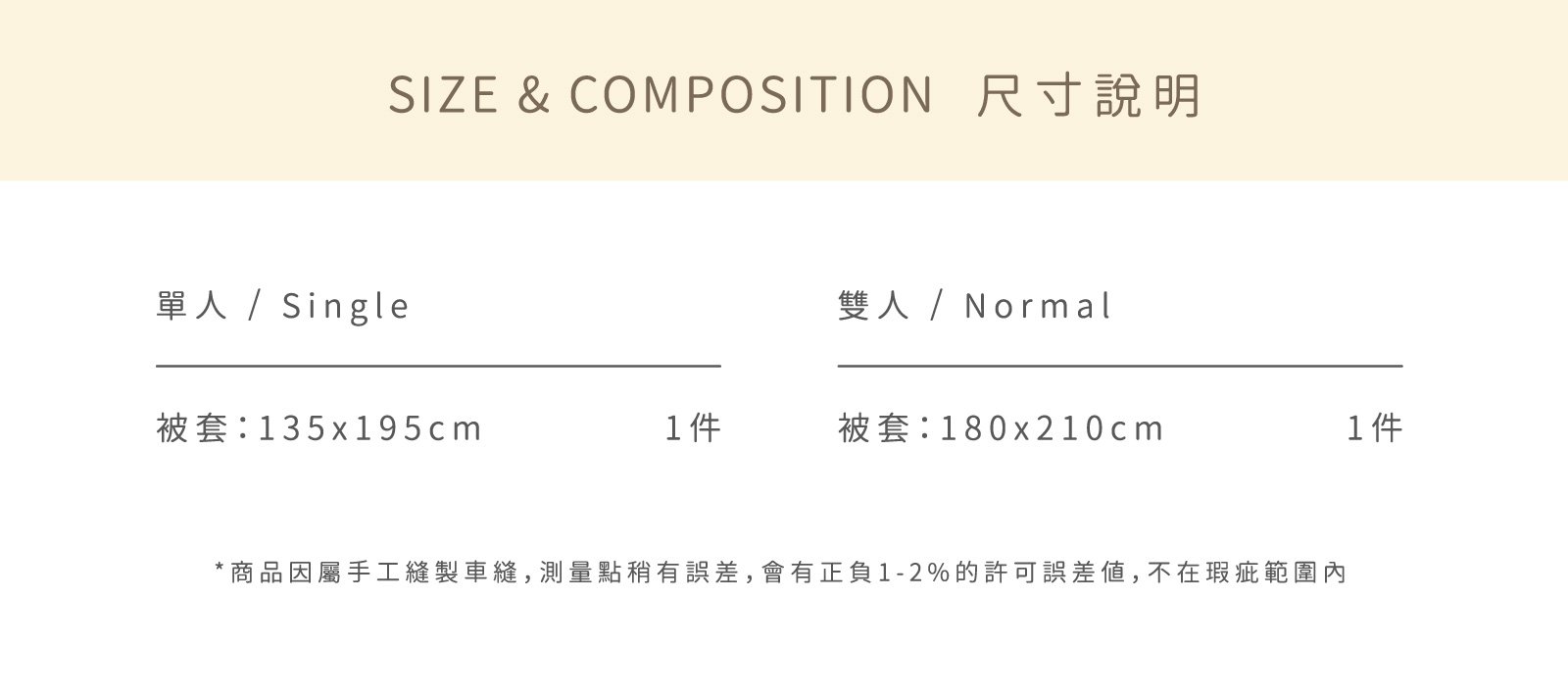 暮雨 - 華爾紗 ( 純棉 ) 被套 NT$2,160 NT$ 1,080 可國外配送 可國外配送 「春風細雨,染成一片藍色想望。」 ◆ 100% Cotton 60支長纖棉,輕透柔軟 ◆ Made in Taiwan 台灣製造,品質安心 ◆ 被套內裡附被耳,被胎不跑位 NT$2,160 NT$ 1,080 #棉被#被套#長絨棉#華爾紗 尺寸 單人雙人 規格 薄被套鋪棉兩用被套 床包尺寸 寬 長 高 公分 床包鋪棉 需要 不需要 被套尺寸 寬 長 公分 被套鋪棉 需要 不需要 價格試算 數量 加入購物車 立即購買 優惠活動 消費滿 990元 即可用優惠價格加購商品 台中購物節合作5倍店家|官網及北屯門市限定! Line詢問 商品細節 尺寸指南 洗滌方式 商品評價(0)