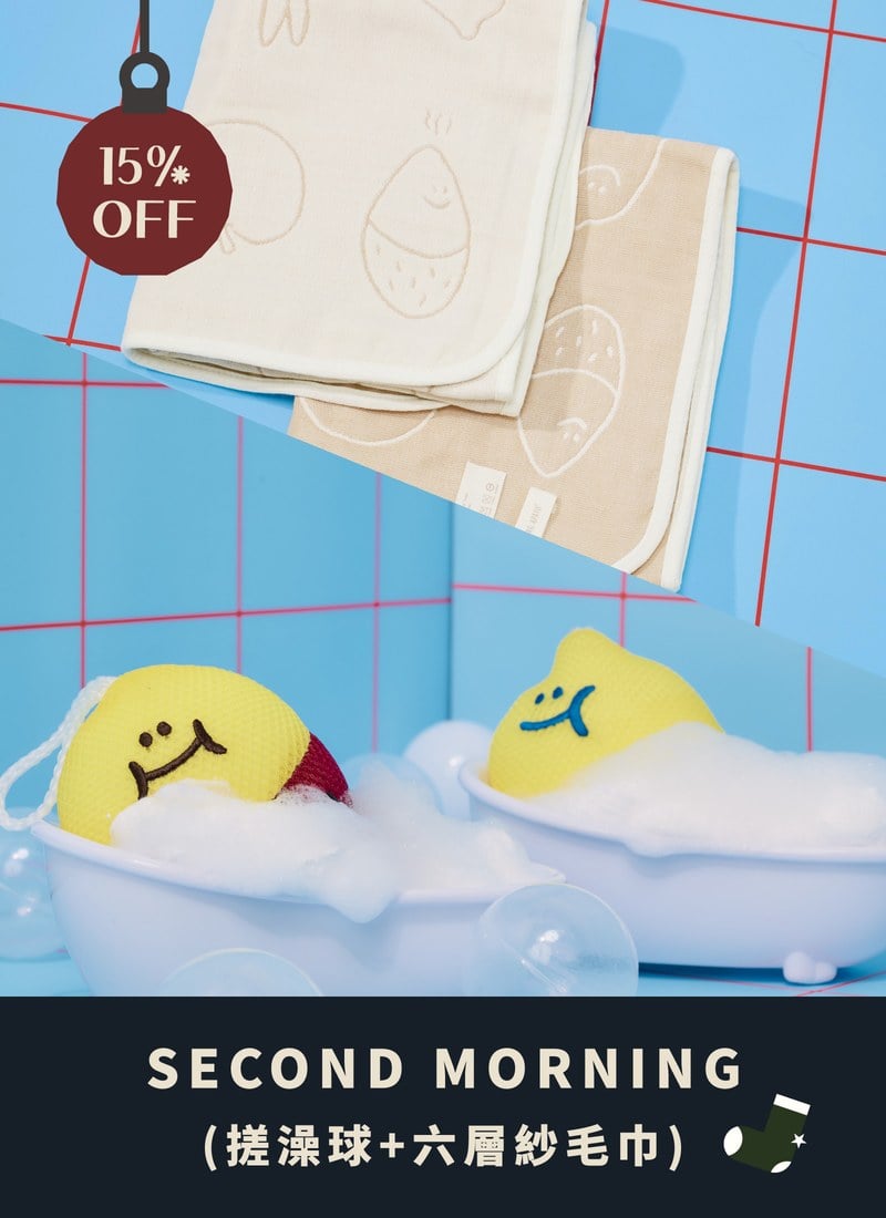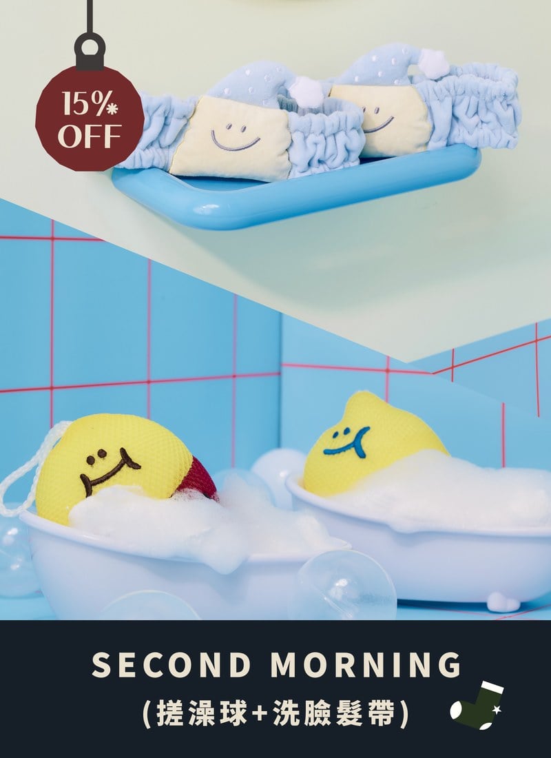 【聖誕包裝套組】搓澡球 x 洗臉髮帶 / Second Morning 正版授權