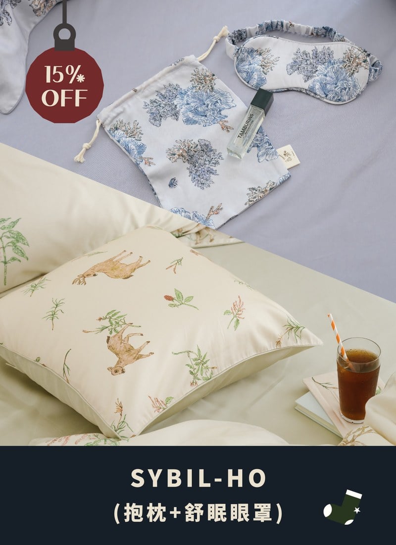 【聖誕包裝套組】天絲舒眠眼罩 x Sybil-Ho 聯名款抱枕